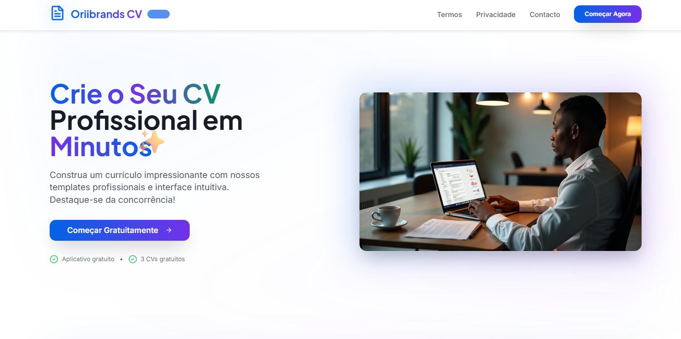O Oriibrands CV foi desenvolvido para conferir total independência ao profissional angolano na construção do seu percurso. Com uma interface intuitiva e arquitectura robusta, a nossa aplicação permite-lhe gerar currículos com um design moderno e elegante, sem a necessidade de recorrer a terceiros ou a cibercafés. Explore diversas variantes do seu perfil e apresente-se ao mercado com o rigor e sofisticação.